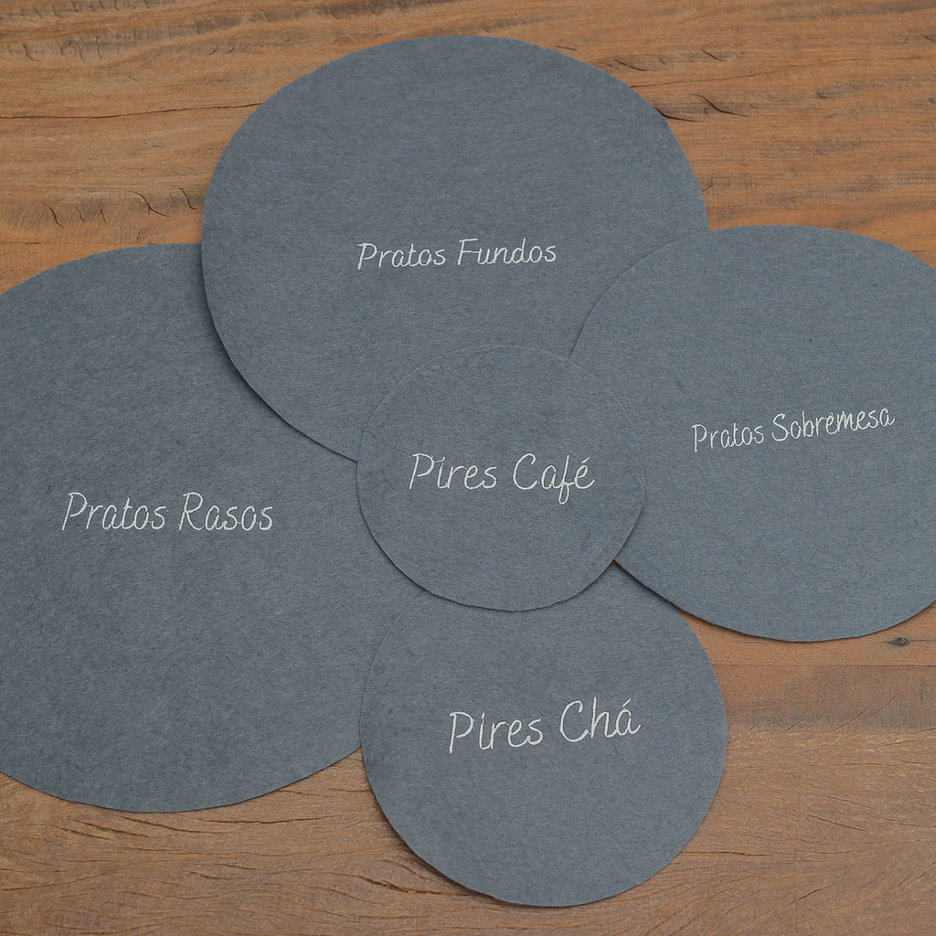 Mantenha seus pires de café sempre organizados e protegidos com nosso Separador de Pires de Café. Confeccionado em feltro 100% poliéster, este acessório é essencial para evitar riscos e danos durante o armazenamento ou transporte da sua louça.